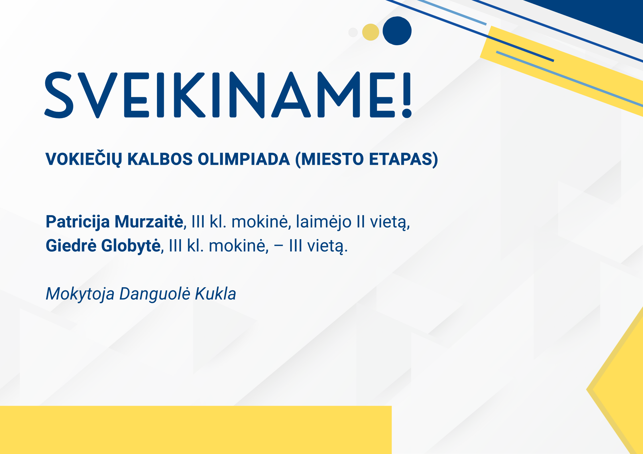 Dalyvavimas miesto anglų k. I-II kl. mokinių konkursas. Ats. anglų k. mokytojos