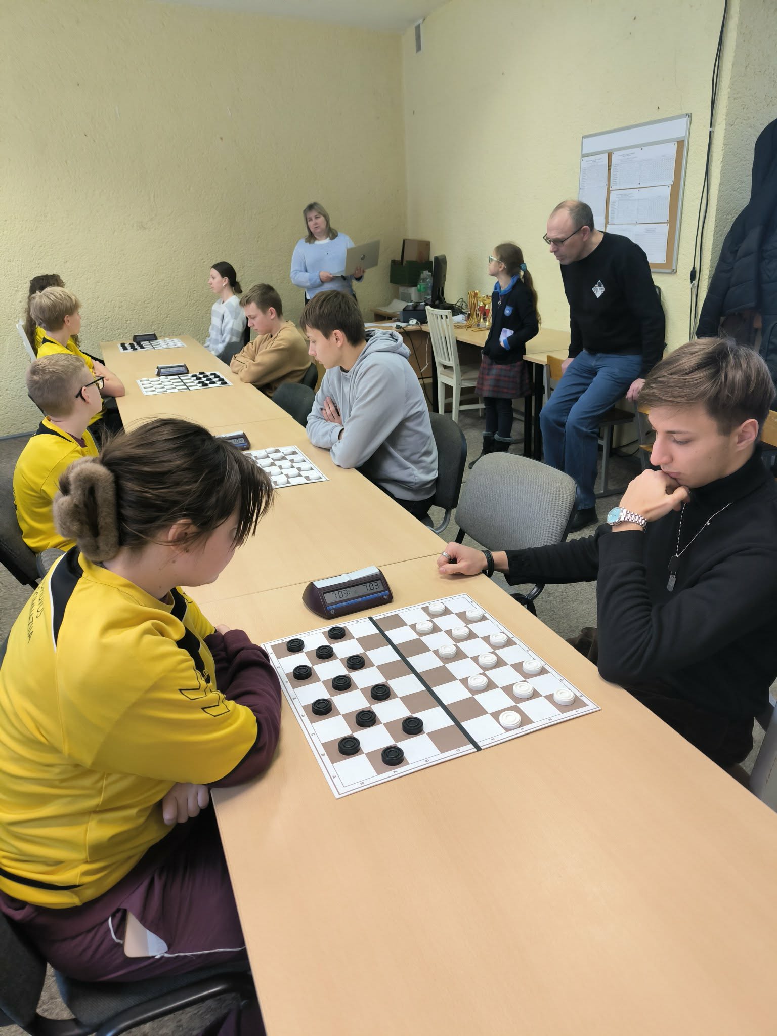 Vasario 10 d. Šaškių ir šachmatų klube vyko Lietuvos mokyklų žaidynių II etapo (Šiaulių miesto) šaškių varžybos. Jose netrūko įtampos, susikaupimo ir azarto. Prie šaškių lentų susitiko J. Janonio ir Didždvario gimnazijų bei Dainų, „Romuvos“ ir Medelyno progimnazijų moksleivių komandos. Jaunieji šaškininkai demonstravo strateginį mąstymą, kantrybę ir gebėjimą greitai priimti sprendimus. Kiekviena komanda atkakliai siekė pergalės, o partijos buvo kupinos netikėtų ėjimų ir permainingų rezultatų. Varžybų atmosfera buvo draugiška, tačiau kartu ir labai konkurencinga – kiekvienas taškas galėjo lemti galutinę vietą turnyrinėje lentelėje.