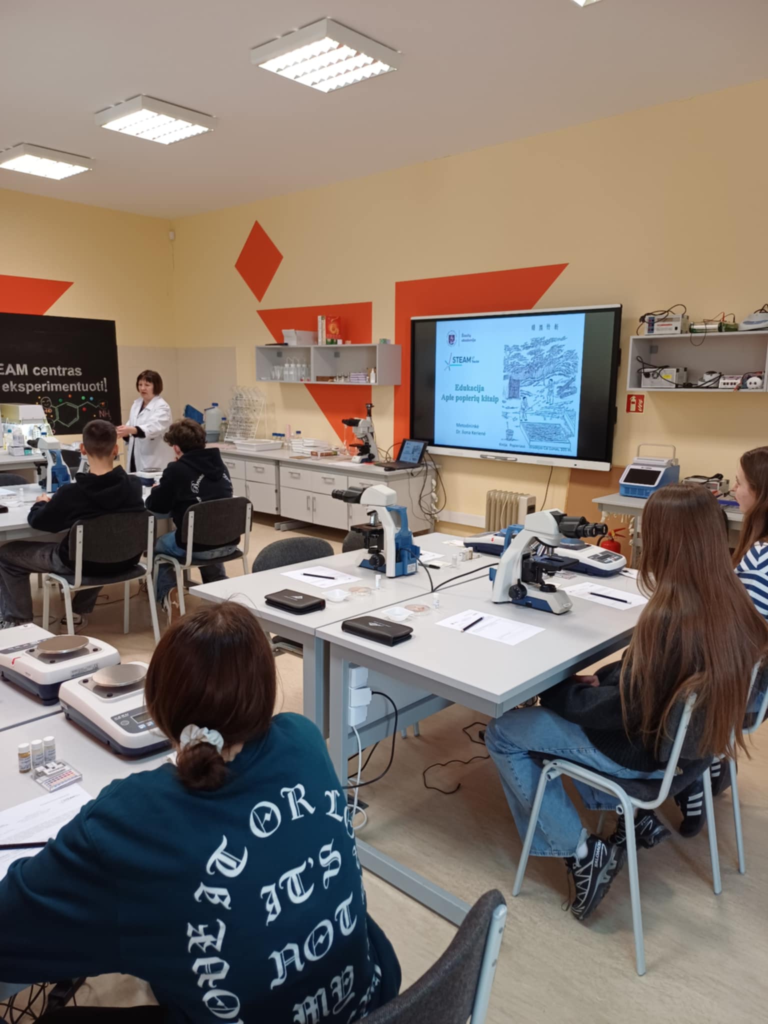 Kovo 23 d. Is kl. mokiniai dalyvavo VU Šiaulių akademijos STEAM centro edukaciniame užsiėmime „Apie popierių kitaip“, kuriame mokiniai turėjo galimybę pažvelgti į popieriaus pasaulį iš arčiau – mikroskopu tyrinėjo augalinius plaušus, matavo popieriaus pH, vertino įvairių rūšių popieriaus kokybę bei savybes.