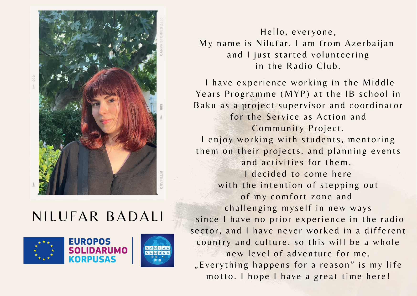 admin2024-04-12T17:00:38+03:00Šiaulių Didždvario gimnazijoje savanoriaujanti Nilufar Badali (Azerbaidžanas), kartu su, Jaunimo agentūros regionine konsultante Sonata Dedūraite, balandžio 11 d. lankėsi Šaukėnų Vlado Pūtvio-Putvinskio gimnazijoje. Vyresnių klasių mokiniams pristatytos savanorystės galimybės pagal Europos solidarumo korpuso programą. Jaunesni mokiniai dalyvavo kūrybiniame Lego užsiėmime „Ateities miestai“. Nilufar Badali On April 11, 2024, I visited the Saukenu Vlado Putvio-Putvinskio gymnasium with Youth agency consultant Sonata Deduraite. We had an informative session with high school students regarding European Solidarity Corps projects. Sonata explained the program, how it works, and how to apply, while I talked about my volunteering experience and its benefits. Afterward, I led a