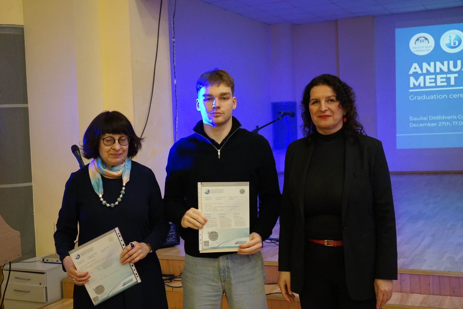Gruodžio 27 d. įvykęs tradicinis renginys „IB Annual Meet“ tapo ypatinga ir labai šilta proga susitikti skirtingų laidų Tarptautinio bakalaureato diplomo programos bendruomenei Didždvario gimnazijoje. Pagrindinė susitikimo priežastis buvo simbolinė, bet labai reikšminga – TB’19 laidos abiturientams buvo įteikti diplomai, tapę gražiu etapo uždarymu ir prisiminimu apie prasmingus gyvenimo metus gimnazijoje.