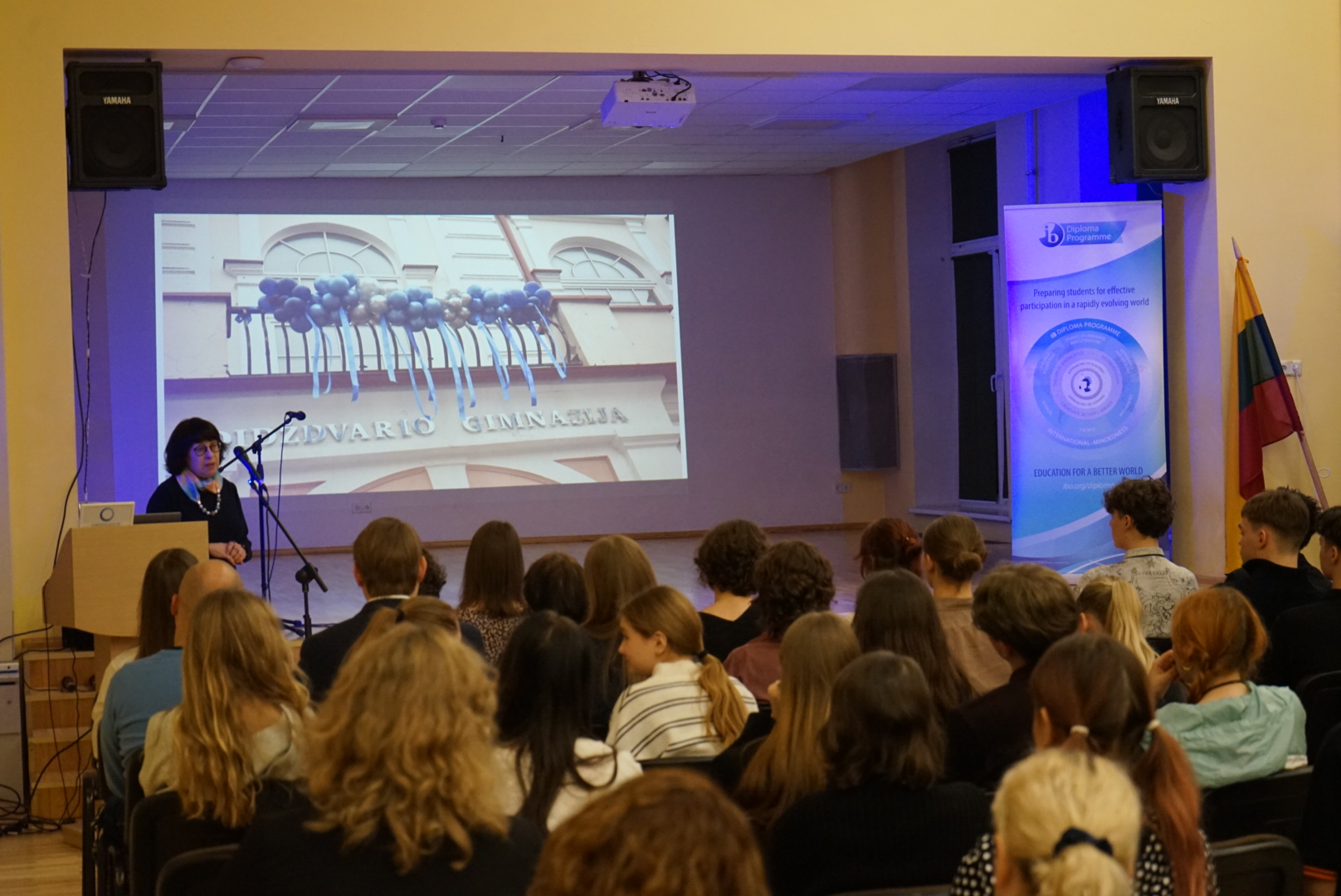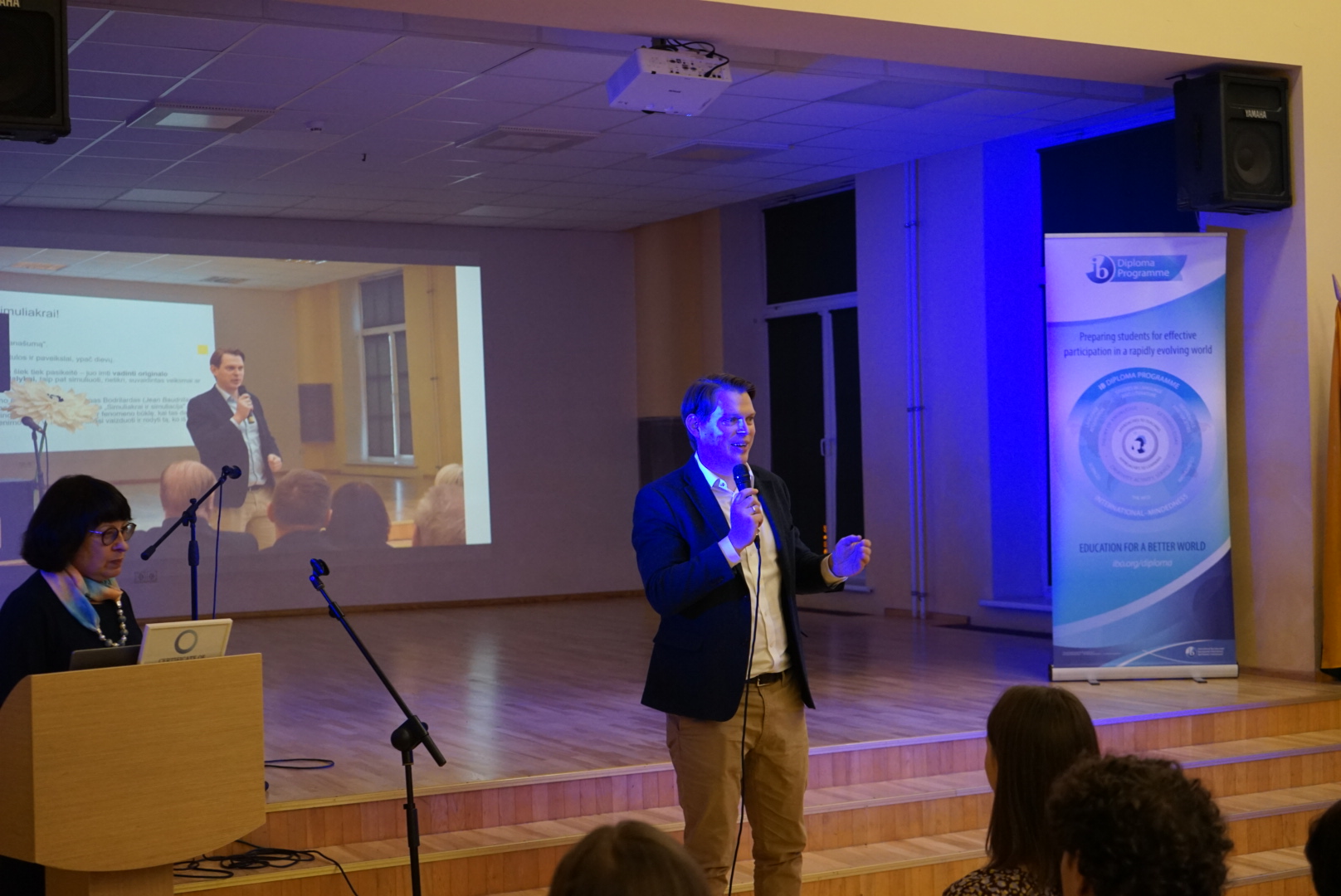 TB DP koordinatorė Rima Tamošiūnienė pristatė ir pasidžiaugė šių metų sėkmėmis: aukštais TB’19 laidos egzaminų rezultatais, prasmingu diplomo programos 20 metų įgyvendinimo jubiliejumi bei faktu, kad Lietuvoje įsteigta TB mokyklų asociacija!