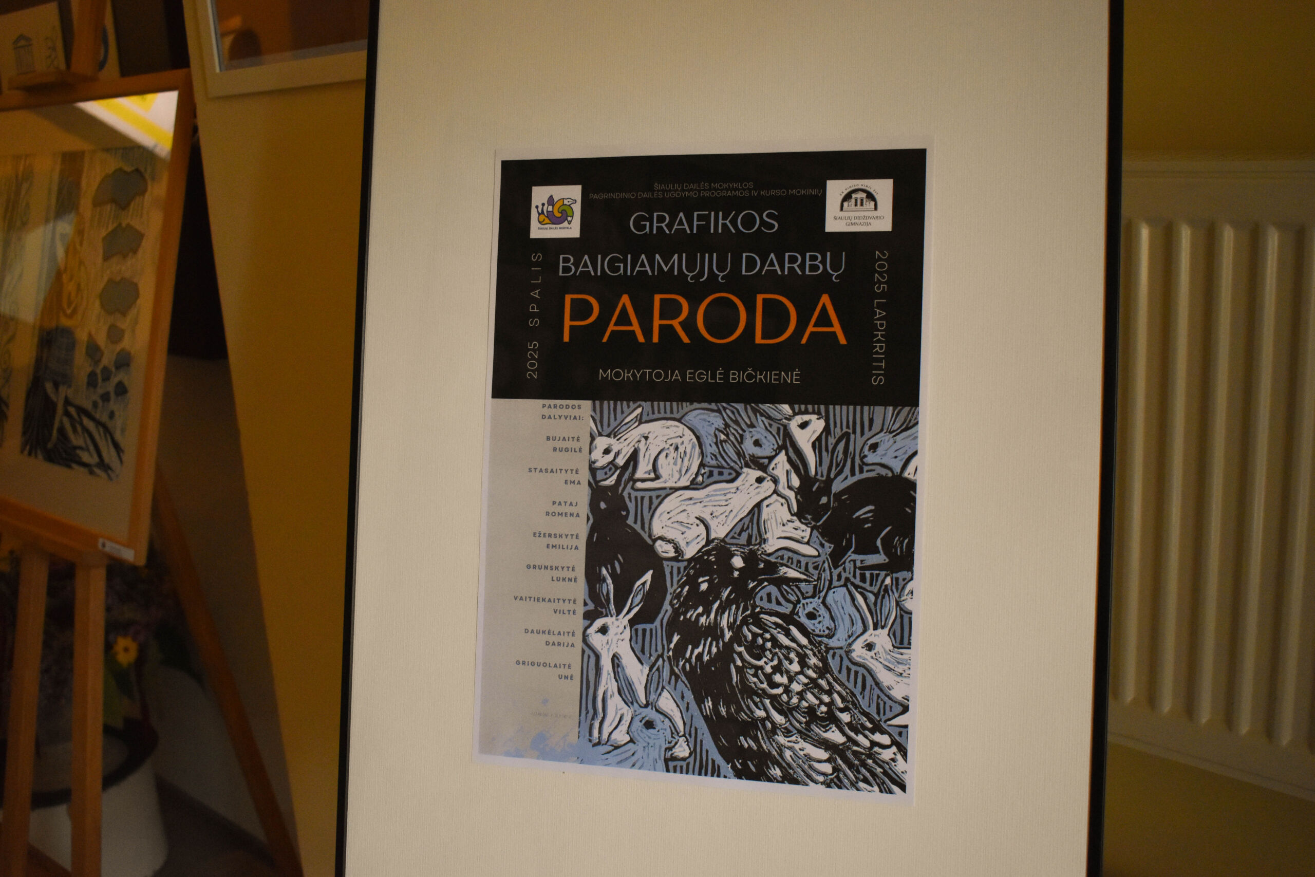 Nuo spalio 21 d. Šiaulių Didždvario gimnazijoje eksponuojama Šiaulių dailės mokyklos pagrindinio dailės ugdymo programos IV kurso GRAFIKOS baigiamųjų darbų paroda (2023-2024