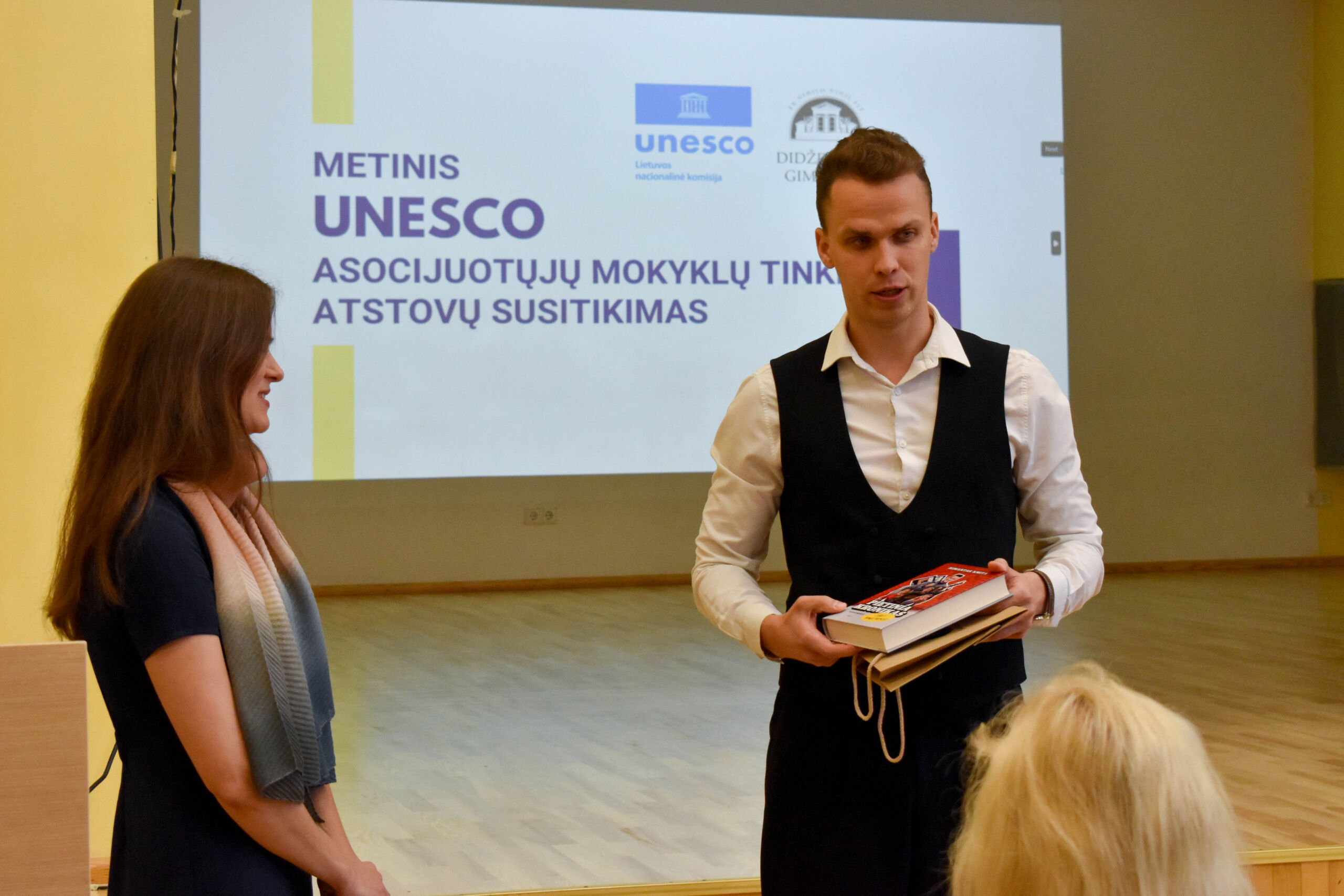 Renginio dalyvius pasveikino vaikų ir jaunimo tautinių šokių „Šėltinis“, gimnazijos direktorius Vitalis Balsevičius, Šiaulių miesto vicemeras Justinas Švėgžda ir, be abejo, Dalia Stabrauskaitė, UNESCO Asocijuotų mokyklų tinklo koordinatorė Lietuvoje.