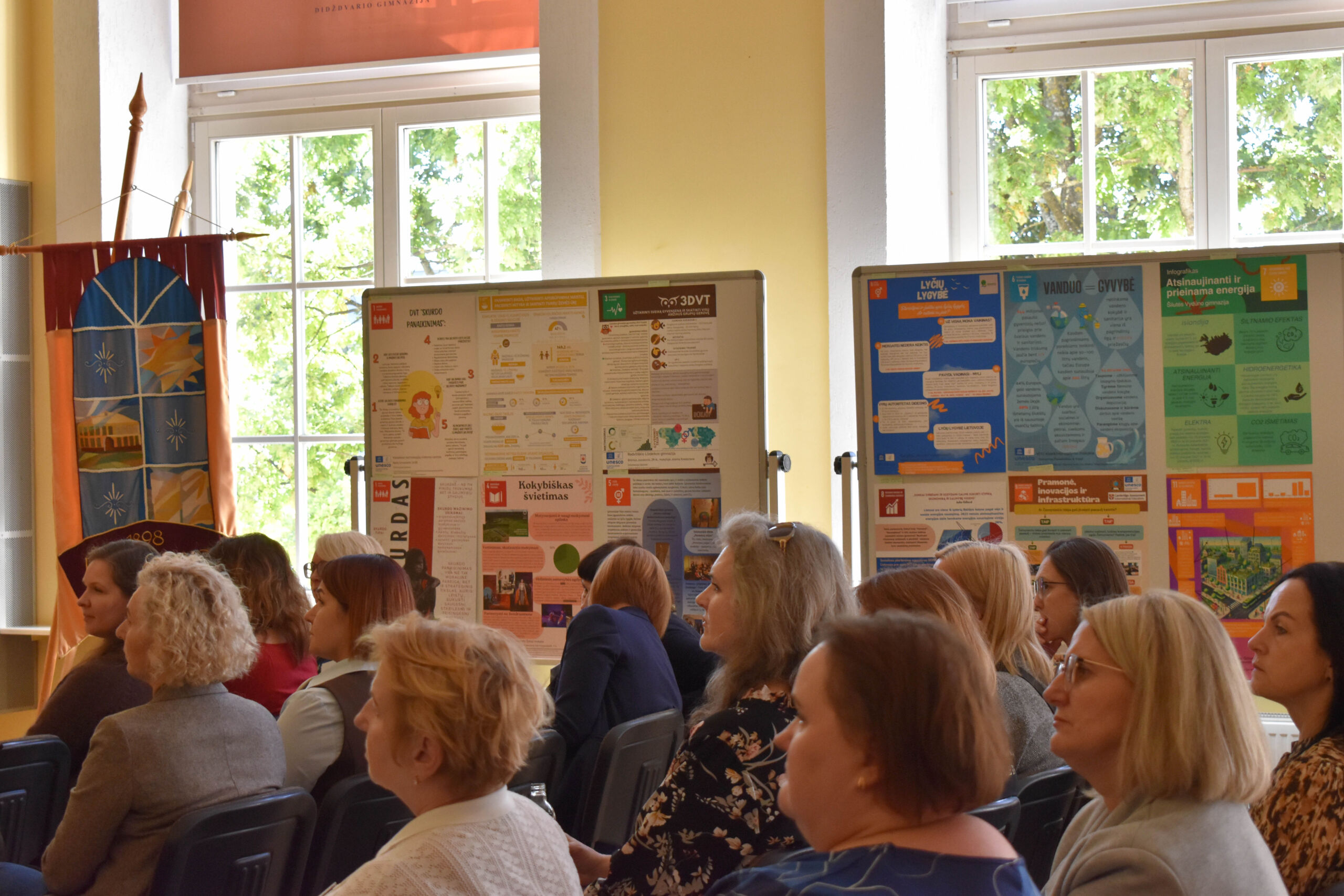 Audronė Saldauskienė, ugdymo skyriaus vedėja, ir Paulius Baranauskas, istorijos mokytojas, dalyviams pristatė gimnaziją, organizavo ekskursiją po mokyklą. Dalyviai itin domėjosi gimnazijoje jau 20 metų įgyvendinama tarptautinio bakalaureato diplomo programa. Dalia Stabrauskaitė metiniame pranešime pasidžiaugė mokyklų nuveiktomis veiklomis įgyvendinant darnaus vystymo tikslus (DVT), aptarė mokinių rengtus plakatus, įteikė laimėtojams padėkas ir prizus.